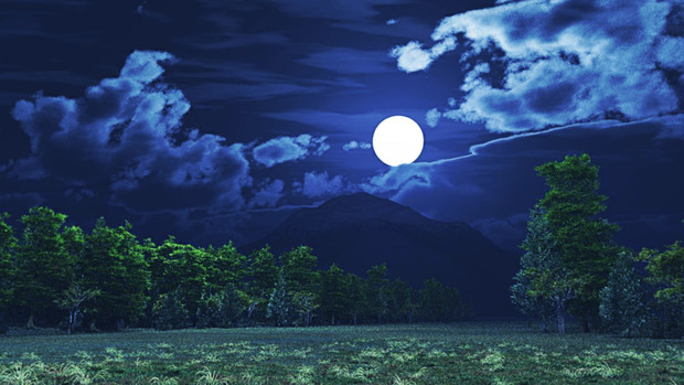 木々に囲まれた水面 映る大きな月 夜景 合成 イラスト素材 834728