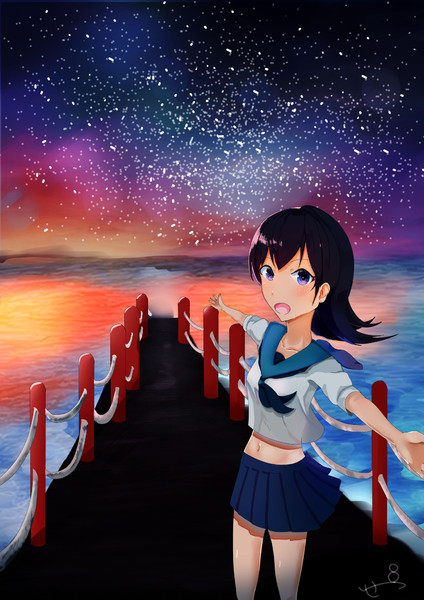 みふる Twitter ನಲ ಲ 星空を見に行く女の子を描きたかった