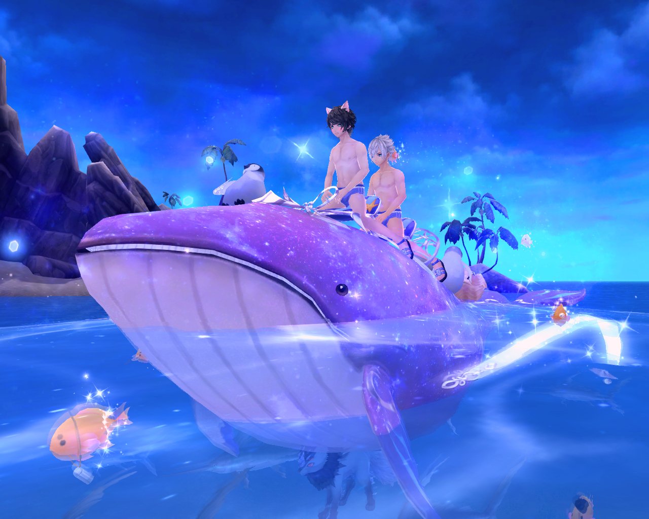 Uzivatel 桜 Mmo Fps Na Twitteru クジラ乗せてもらったー 綺麗じゃのぉ いい感じに海と融合してる しかしよく見るとクジラの下にバディン潜んでるw消したのに w 最後はアマテラスちゃんがおぼれそうでしたw