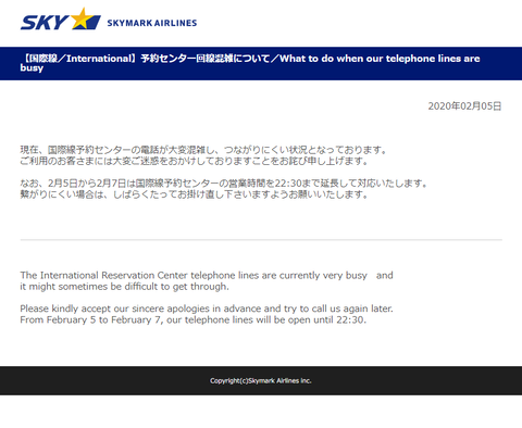 スカイマーク 予約センター