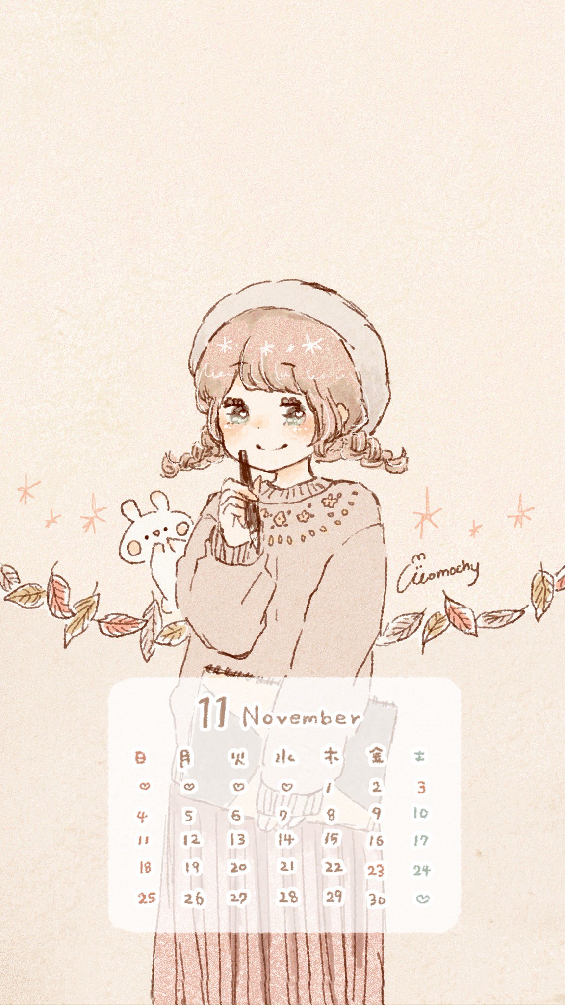Momochy ももちー Pa Twitter 11月の壁紙に使えるイラストです カレンダーなし 月曜はじまり 日曜はじまり お待たせいたしました よろしければお使いください ロック画面 壁紙 カレンダー
