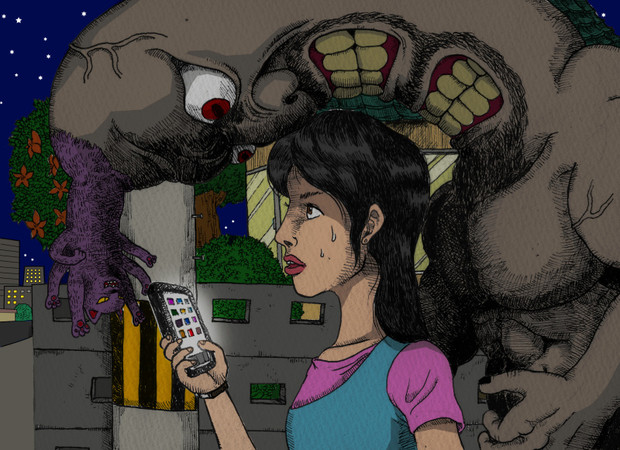 夜道 怖い イラスト