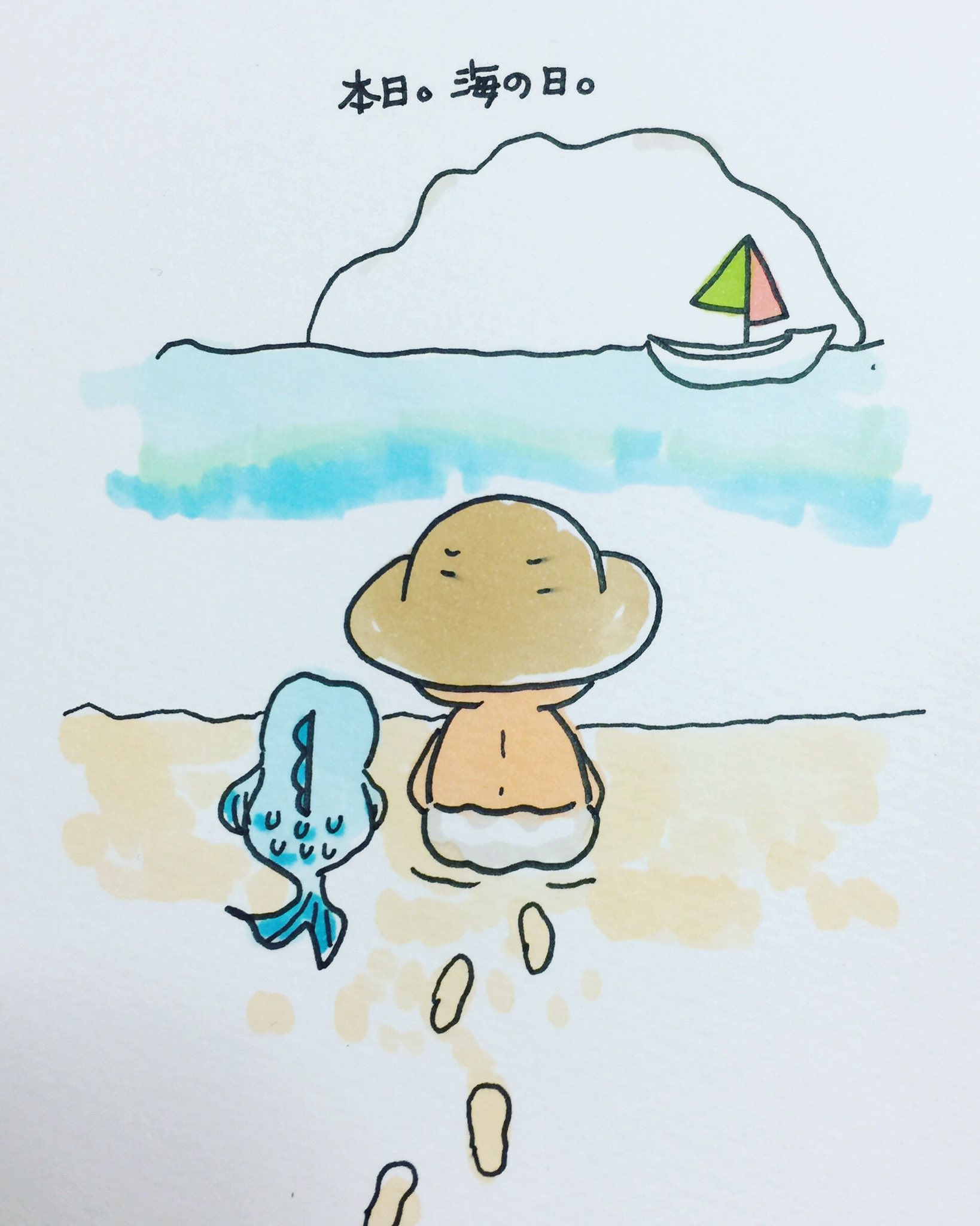 ともさんラインスタンプ販売中 On Twitter 海の日 イラスト基地
