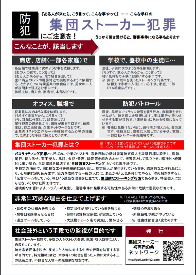 集団ストーカーテクノロジー犯罪広報用メッセージ ウォーカー原稿2