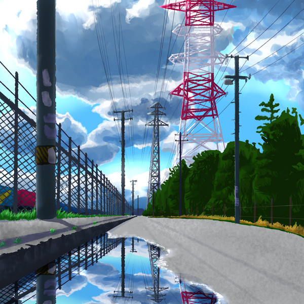 オリジナル 雨上がりの街 あきまのイラスト アニメの風景 アート